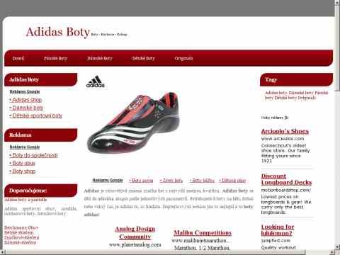 Adidas Boty Informace o znáčce Adidas a kde nejlépe nakupovat. Adidas je celosvětově známá značka bot s nejvyšší možnou kvalitou. Adidas boty se dělí do několika skupin podle jednotlivých parametrů. Boty na běh. http://www.adidas-boty.shopinfo.cz